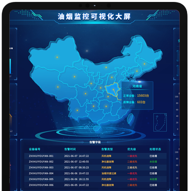 可對油煙濃度、顆粒物濃度、非甲烷總烴濃度,開展實時監測,集油煙檢測、數據收集、傳輸數據等功能模塊為一體,根據4G/GPRS通訊方式將信息上傳入監控管理平臺,完成監管工作人員和餐飲企業管理方法的遠程控制查詢。
